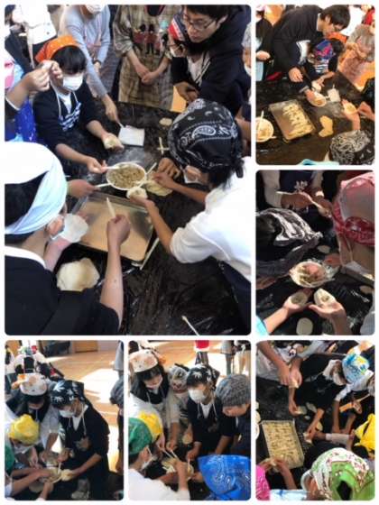 まずは粉から餃子の皮を作るところから始めました。粉を丸め、それを伸ばし広げて、ようやく包む皮ができます。