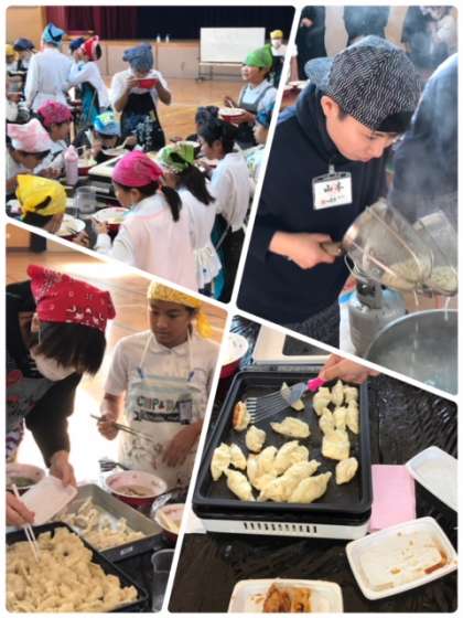 餃子を作ることができたところから、ラーメンをいただきました。本物の味に、みんな大満足です。さらに、いい具合に餃子も焼き上がり、みんなとてもいい表情で食べていました。