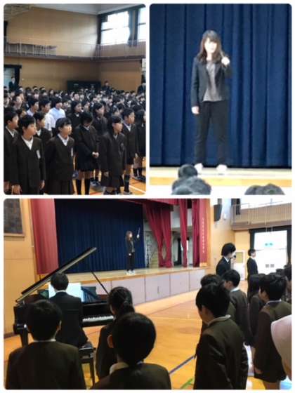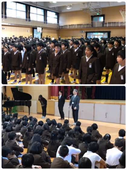 始業式では、まず学校長から、新年にあたりめあてを決め、それに向かって努力して伸びていきましょう、と話がありました。