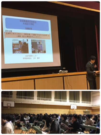 17日、出来島小学校で、西淀川区教員研究発表会がありました。今回、大和田小学校も、日頃の研究の成果を発表しました。
