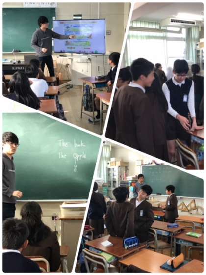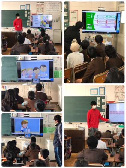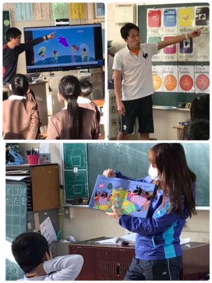 読書タイムに引き続き、英語活動をしています。6年生は、互いに英語で質問しあっていました。さすがです。