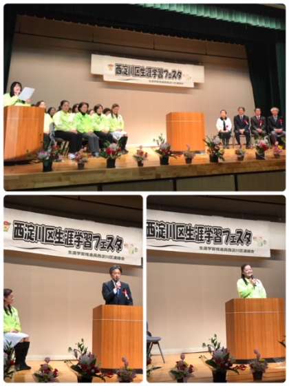 20日、21日、エルモ西淀川で西淀川区生涯学習フェスタが行われました。式典では、本校区代表の岡崎さんや、西淀川区長の挨拶に引き続き、舞台発表がありました。