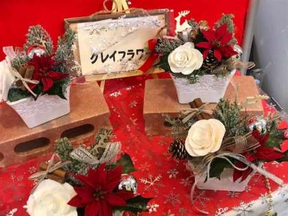 クレイフラワーというのは、粘土だそうです。白い薔薇の花びらは1枚ずつ作って乾かして仕上げていくそうです。