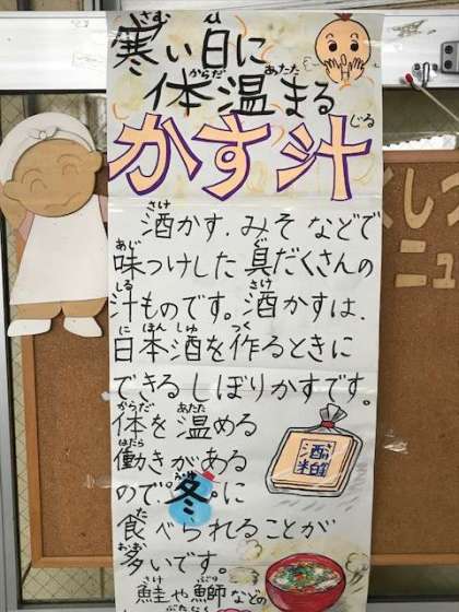 こんなに寒い日は、かす汁飲むと、本当に身体が温まります。温かくて美味しい給食に感謝して、いただきます!