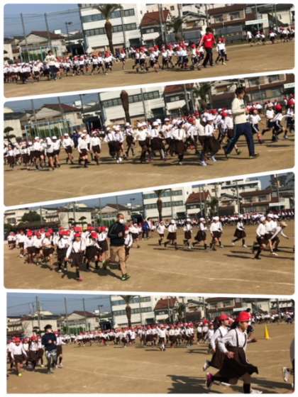 20分休みに全校児童で運動場でかけ足です。