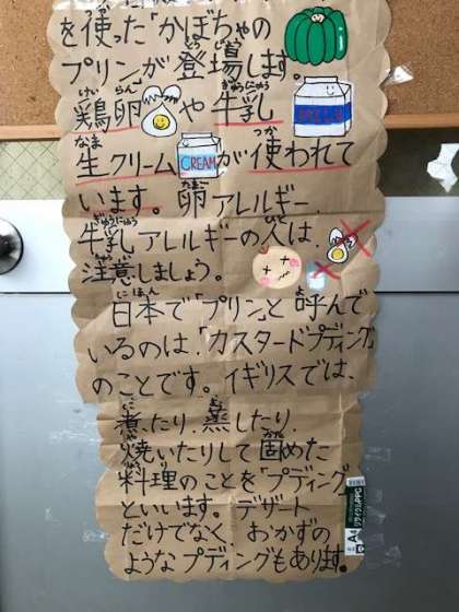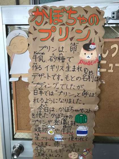 かぼちゃのプリンは、甘くて、とても美味しかったです。子どもたちにも人気のデザートの一つです。