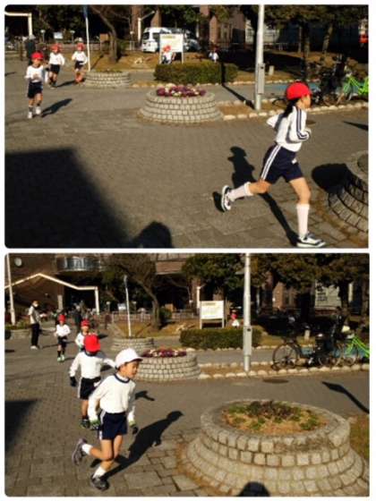 そして、戻ってきて、20分休憩には、かけ足週間なので運動場でも走りました!