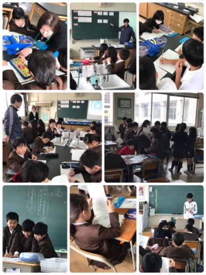 3年は、1組が理科室で重さの学習、2組が教室で道徳の学習をしました。