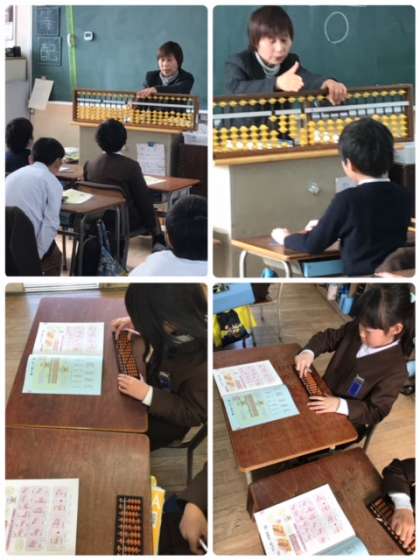 22日、2時間ずつ、特別講師にお越しいただき、そろばんの学習に取り組みました。