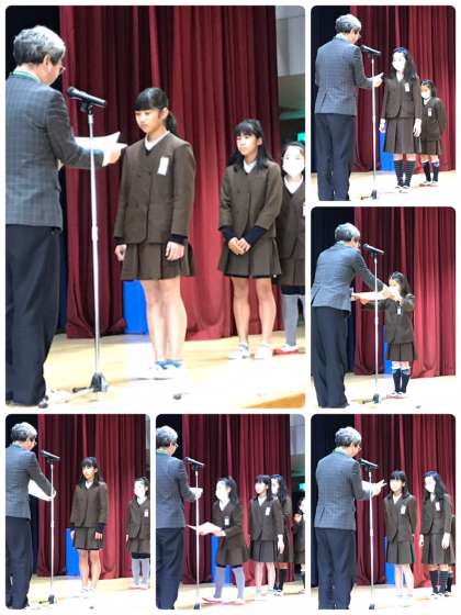 続いて、教育長表彰、キックベースで優勝した大和田S.M.Gの皆さんへの表彰、チャレンジ二重跳び大会の表彰、マラソン大会の表彰がありました。