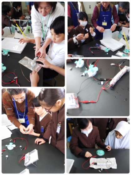 27日、外部からの出前授業で、6年生は発電や電気の利用について学習しました。木炭電池や風力発電、太陽電池や人間発電まで!初めは固い表情だった子どもたちも実験の楽しさと来てくださったみなさんの優しさでどんどん表情がほぐれ、最後には満面の笑みで授業を終了しました。この中から未来のノーベル物理学賞に輝く人材が出てくるかな?