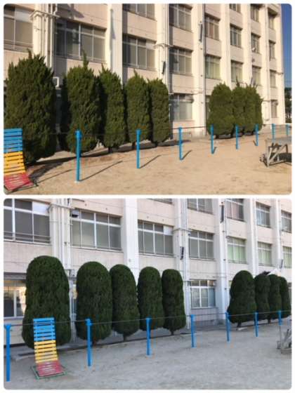 昨日1日かけて、業者の方に、校庭の樹木の剪定をしていただきました。
