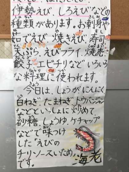 海老のチリソース炒め、中華がゆ、デコポン、ライ麦パン、牛乳