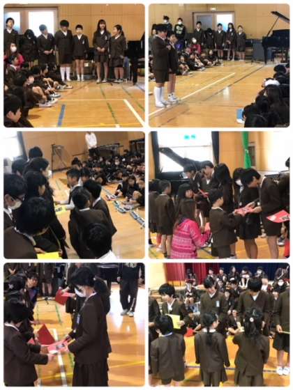 たてわり班でお世話になったので、すべての班で6年生に感謝のメッセージカードを作って渡しました。