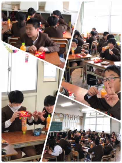 5時間目、6年生はそれぞれ教室で、楽しいひと時を過ごしています。