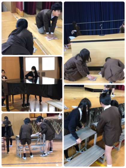 2時間目、5年生が講堂の設営に取り組みました。最高学年になる自覚を持って、一生懸命に準備しました。懸命にいい汗をかいていました。さすがです!