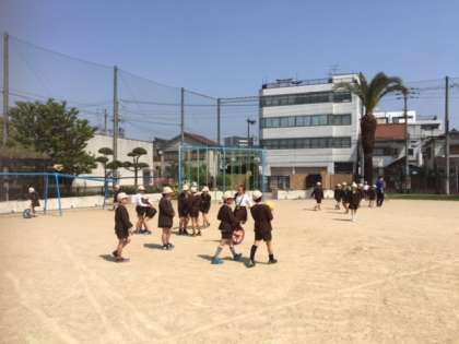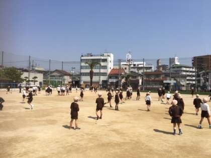 この晴れ渡った空の下、大和田小学校の運動場では、子ども達が元気にあそびまわっています。どの子達も笑顔です。