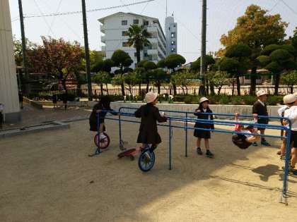 天気も良く、多くの児童が友達や先生と外で元気に遊んでいます。