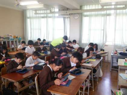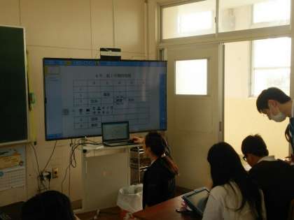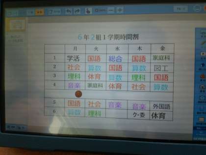 6年生は、タブレットを使って一人ひとりがオリジナルの時間割表を作っていました。