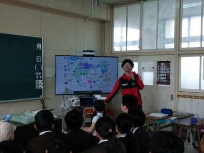5年生は、国名の英語の発音を聞き取って繰り返し発声したり、食べ物の英語の発音を聞き取って繰り返し発声したりと楽しく音声活動に取り組んでいました。