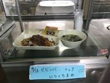 ビビンバ、トック、煎り黒豆、牛乳