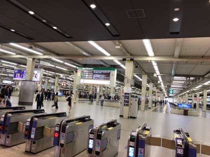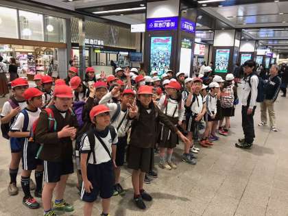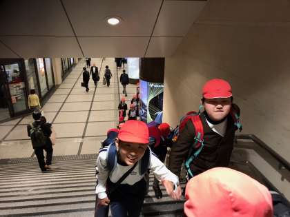 阪神電車から乗り換えで阪急梅田駅へ向かい、今、阪急電車の急行に乗りました。昨年の社会の学習で習ったターミナルの役割について、実際に学んでいます。