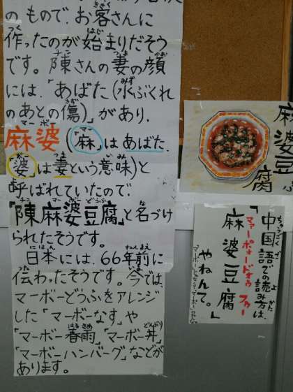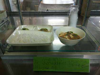 マーボーどうふは、ピリッと辛いイメージですが、給食では子どもたちが食べやすいように味つけされています。