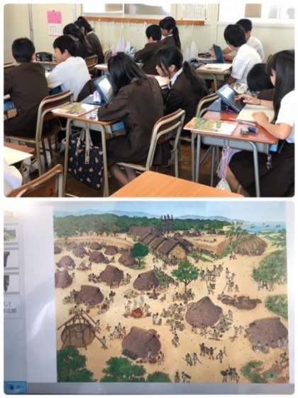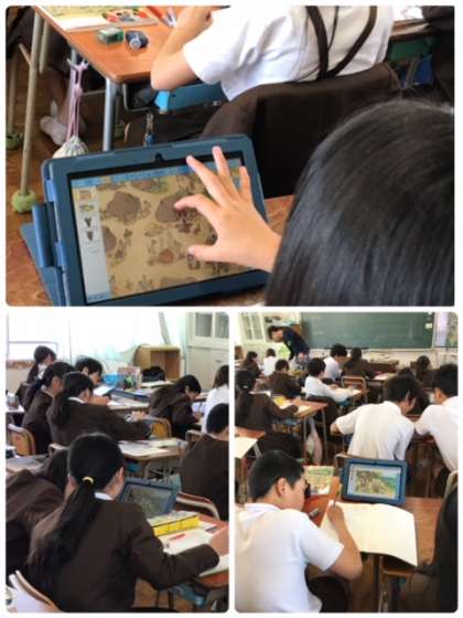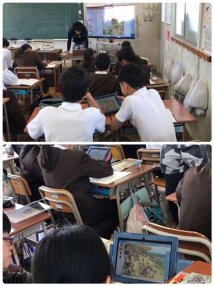 6年生では、社会科の学習で、タブレットを使って、調べながら考えを深める、という学習に取り組んでいました。ICTモデル校として3年目。子どもたちも、操作には慣れたものです。