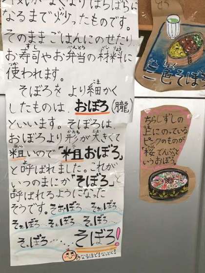 皆さん、なんで『そぼろ』っていうか知っていますか?栄養教諭の岡山先生が、毎日いろいろなことを書いて教えてくださっています。