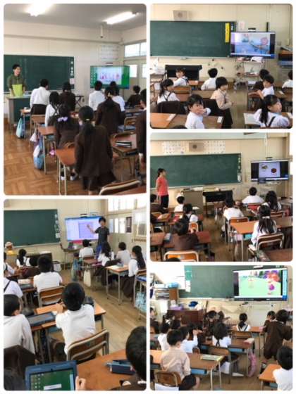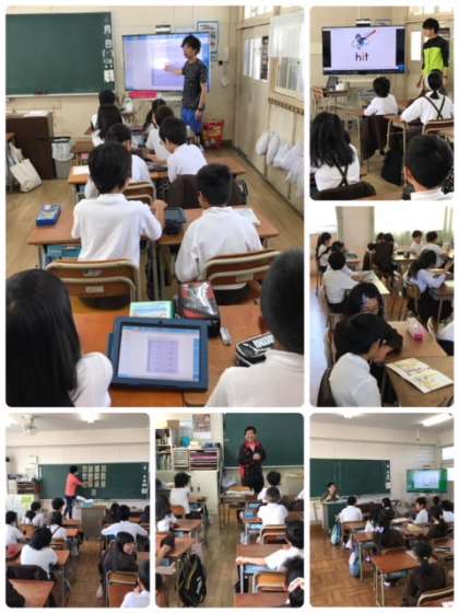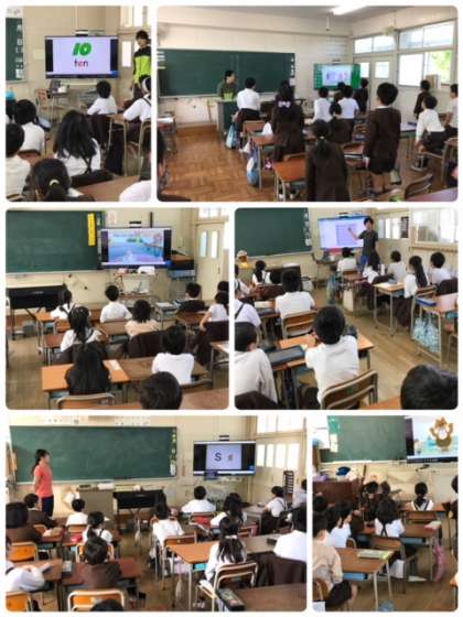 全校読書タイムに続いて、フォニックスの時間。どのクラスも英語のシャワーを全身で浴びています。1年生も興味を持って取り組んでいめす。