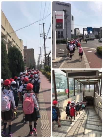 絶好の遠足日和です。4年生が伊丹スカイパークに向けて出発しました。歩き方、電車内も、高学年らしい態度でした。