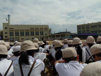 朝登校するやいなや、子ども達から「淀中の組体が見たい!」との声。