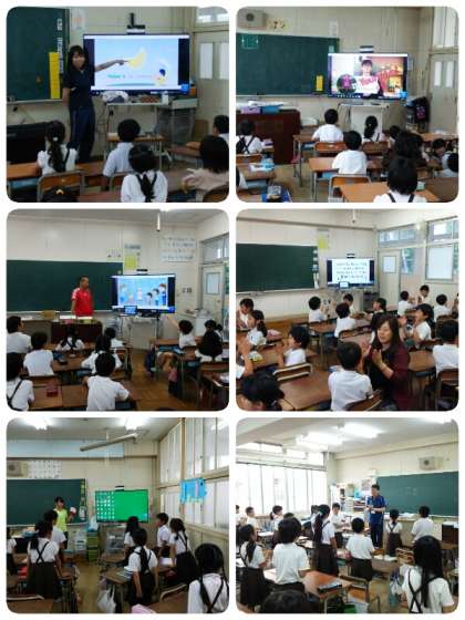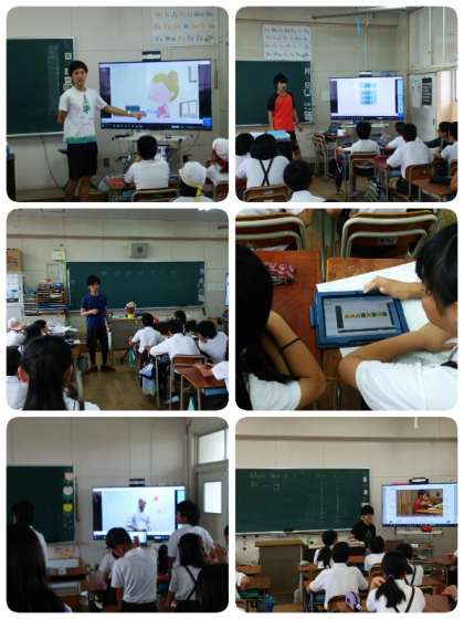 大型テレビやタブレットを使って、アルファベットジングルや英単語の発音のしかたや歌などの活動に楽しく取り組んでいました。