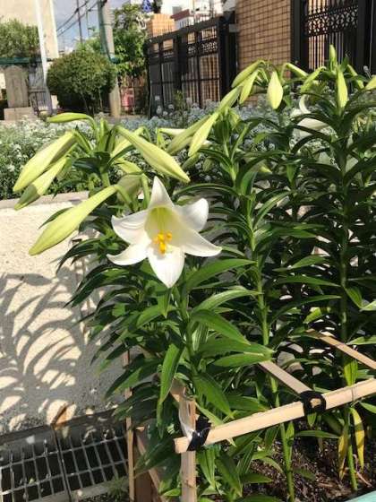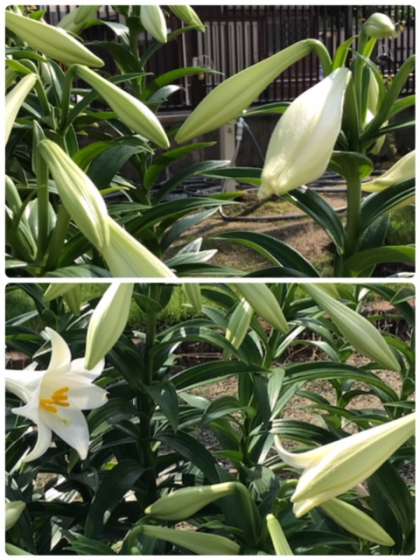 久しぶりの晴天。露にぬれ、とてもいい香りがしているユリの花。