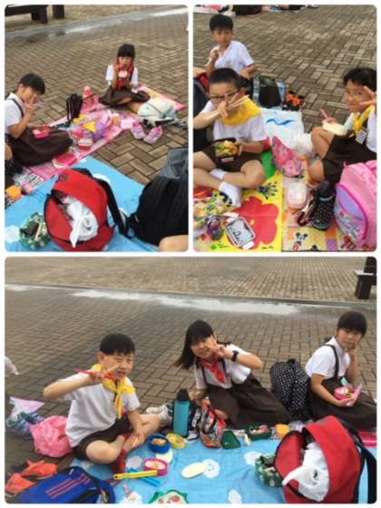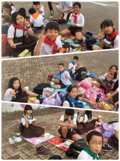 雨もつかの間の休憩のようです。その合間をぬって、外でお弁当を食べました。