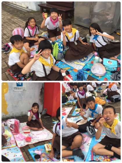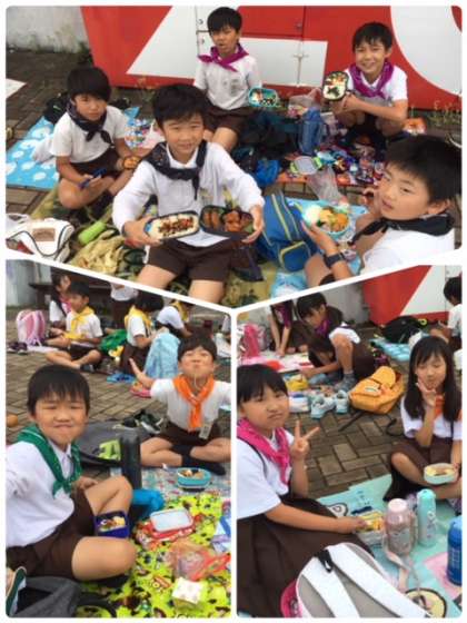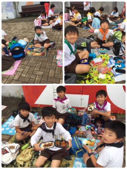 雨もつかの間の休憩のようです。その合間をぬって、外でお弁当を食べました。