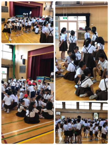 今日は、水族館へ行こう!ゲームで楽しみました。言われた海の生き物の名前の文字数で、グループを作ります。
