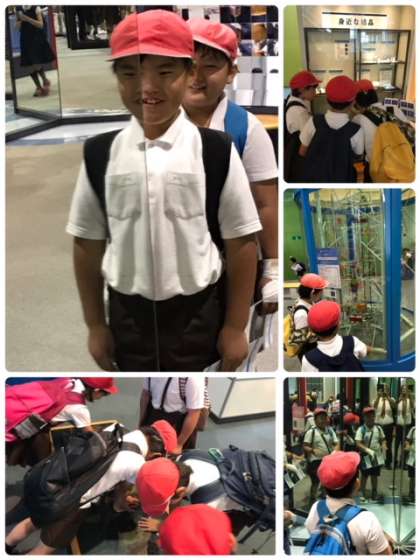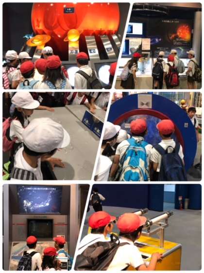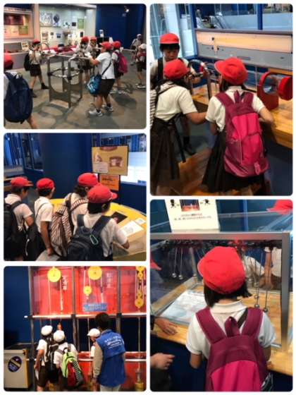 4階から、テーマごとの展示を見たり触ったりしながら、楽しく科学を楽しんでいます。