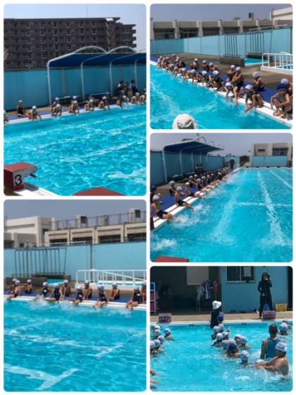3時間目2年生がプール開きです。