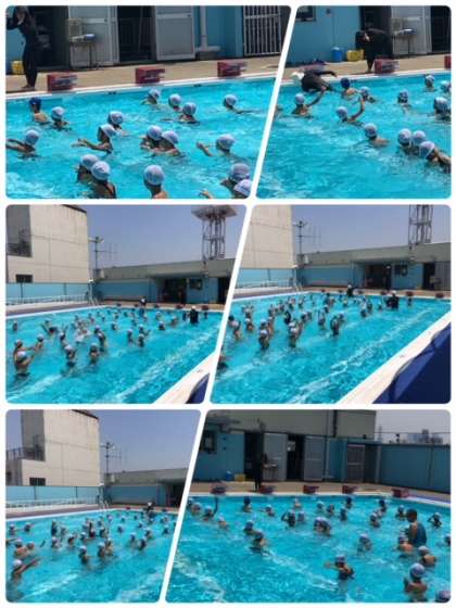 音楽に合わせて体操したり水の中で身体を動かしたりもしました。