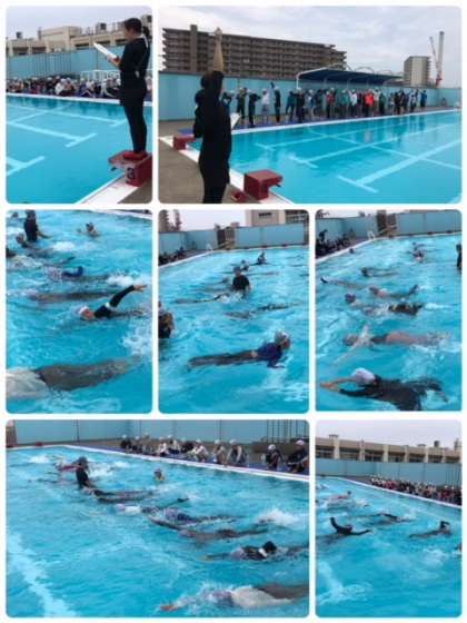 2時間目、6年生が着衣水泳に取り組みました。命を守るため、着衣でプールにはいり、その大変さを体感しました。