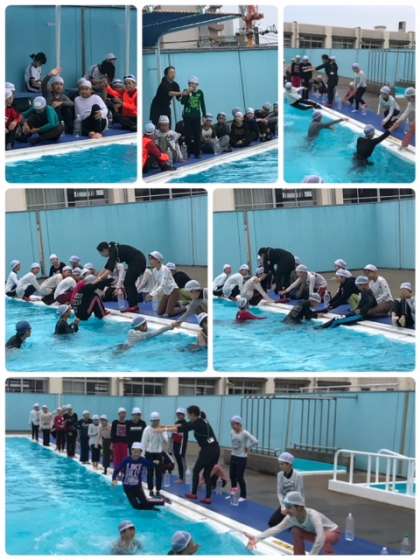 万一水の事故にあったら、あわてず、さわがす、落ち着いて、浮く事が大切だとわかりました。また救助についても学びました。