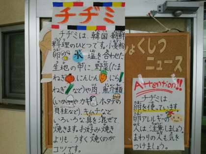 今日の給食の献立は、豚肉と野菜の煮もの、チヂミ、もやしの甘酢あえ、おおがたコッペ、牛乳です。