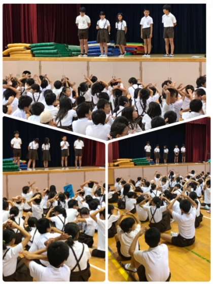 4日の朝はたてわり班活動によるなかよし集会から始まります。