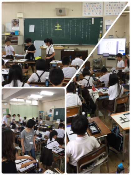 発表したり、辞書で漢字を調べたり筆使いに注意して字を書いたりとどのクラスもとても活動的です。