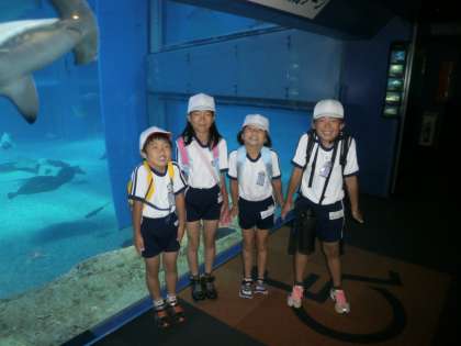 3年生の遠足は海遊館に行ってきました。梅雨の真っただ中、天気が心配でしたが、暑くて困るほどの快晴。全身で楽しんできました。電車の中もお行儀よく、多少のおしゃべりやふざけはあったものの、大きな問題なし。歩いているときも仲良くおしゃべりしながら楽しくできました。そして海遊館の中では班行動で、仲良く楽しく元気いっぱいに(走り回る子も?)見学し、イルカのおへそを見つけて感動していました。