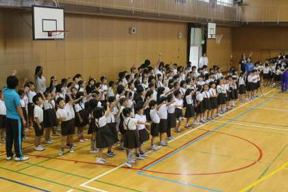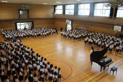 たて割り班活動や音楽集会を行っています。今週は音楽集会、「サラスポンダ」や「アンパンマンマーチ」「ビリーブ」をみんなで一生懸命歌いました。
