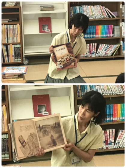 24日、図書館開放の時に、西淀川図書館より根来さんにお越しいただき、ブックトークをしていただきました。