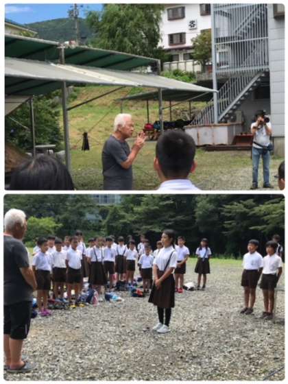 食事、記念撮影の後、いよいよ宿舎に入ります。角野山荘のご主人に、これから三日間お世話になりますと、しっかり挨拶できていました。