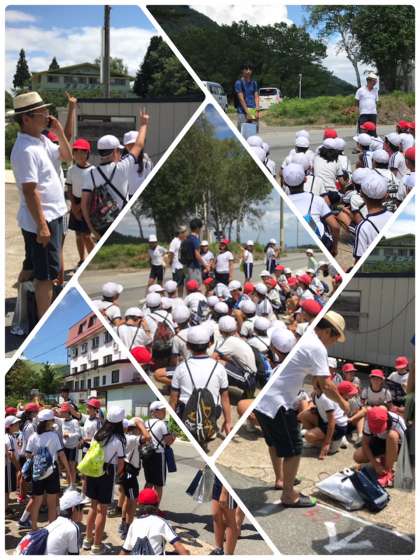 5年生は避難訓練後、魚つかみの場所へ移動しました。